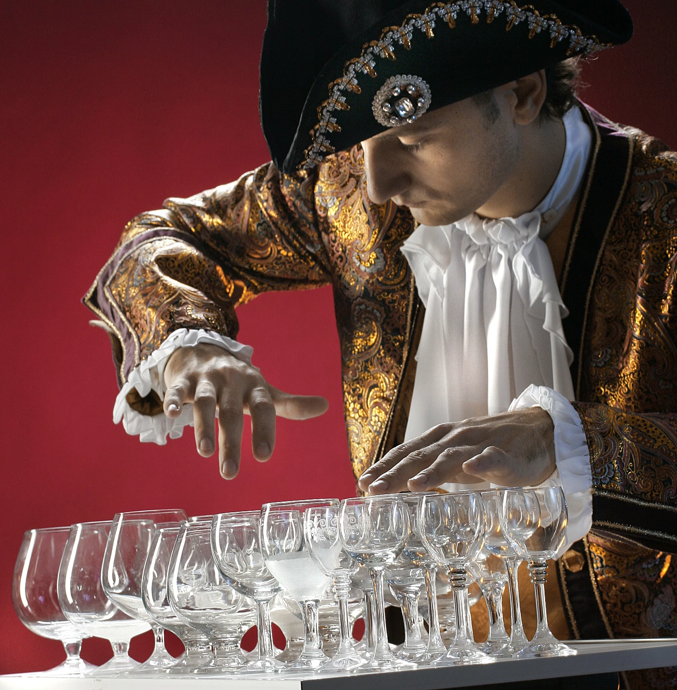 Александр Лемешев — широко известный музыкант-виртуоз с мировым именем, демонстрирующий виртуозную игру на необычном инструменте, который называется «стеклянной арфой» (игра на бокалах).