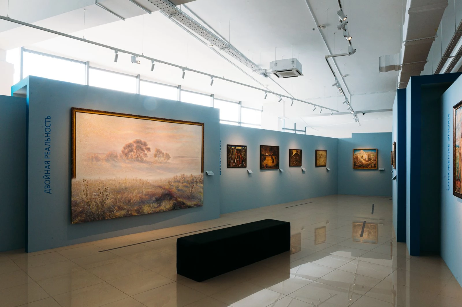 Архитектура выставочного пространства и камерность экспозиционных залов создали особую медитативную атмосферу, позволяющую совершить путешествие по лабиринтам пространства и времени и включиться в игру узнавания способов создания художниками своих картин.