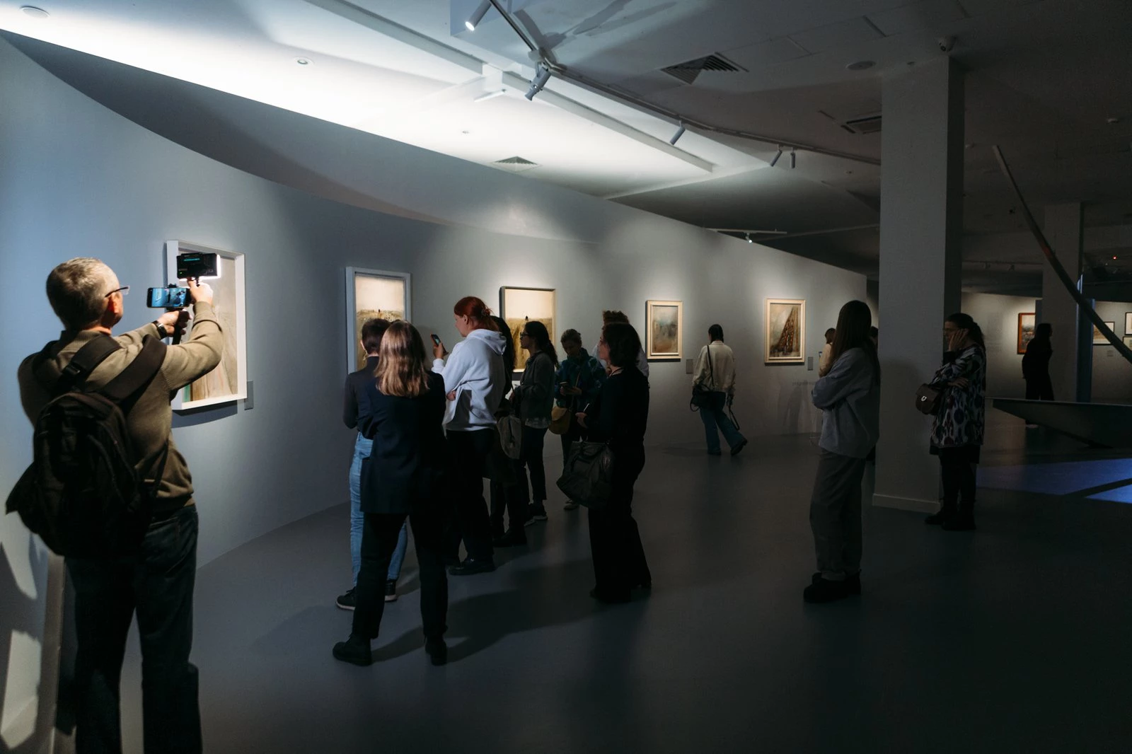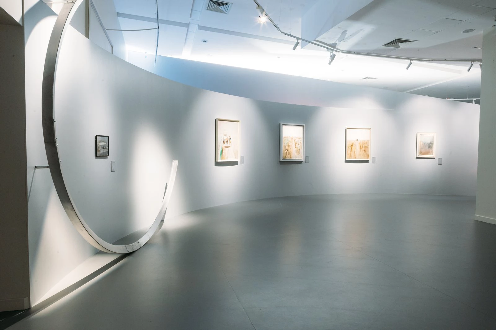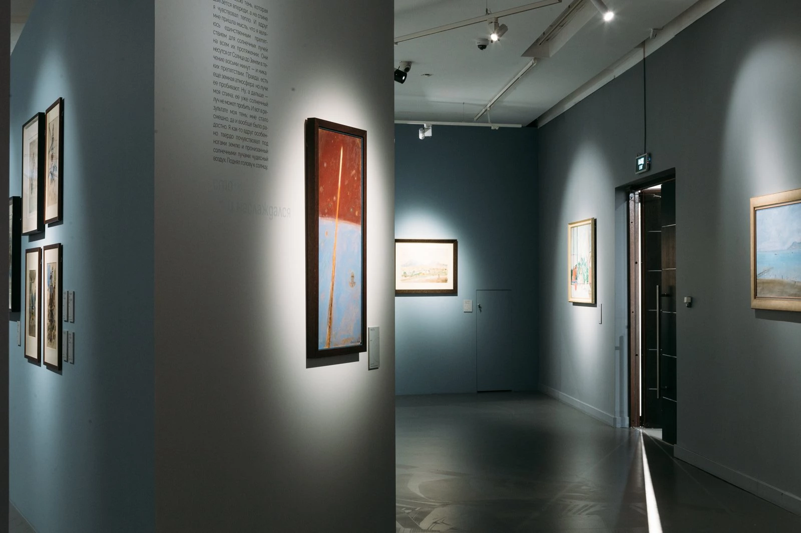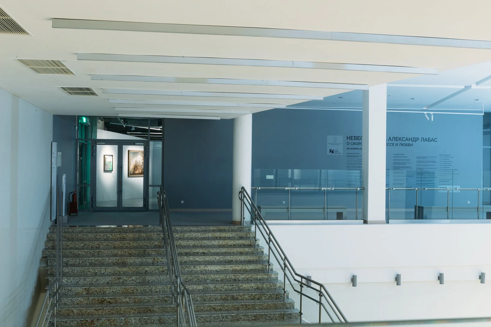 «Лабас создал свой иллюзорный мир, он воспарил над реалиями своего окружения и времени. Мы попытались создать легкое невесомое пространство, пространство глубины и воздуха. Полукруглые формы, где нет горизонтальных линий, пространство окутывает зрителя, меняет угол его зрения и погружает в заоблачный мир художника. Модули напоминающее остов дирижабля… мы как будто сами находимся внутри него, где-то выходя и летая вокруг»