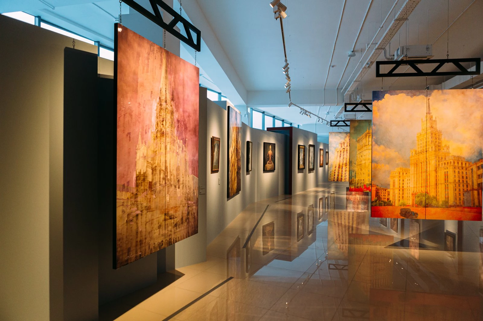 Среди ключевых работ выставки — «La Russ» из серии «Sensuality», выполненная в уникальной авторской технике Эгломизе, «Москва» из серии «Сталинский ампир».