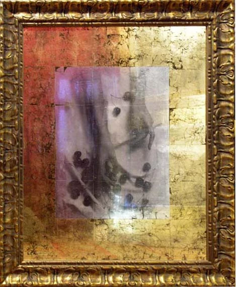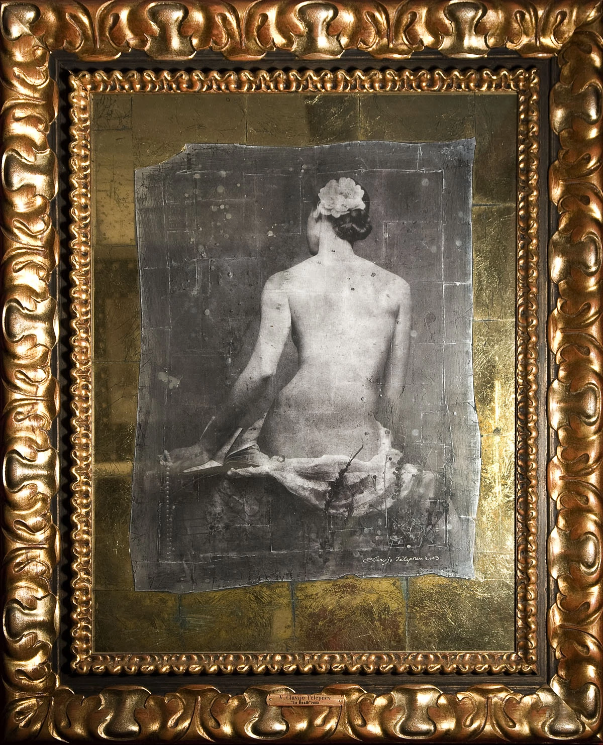 Технология Владимира Клавихо-Телепнева не подразумевает искусственного получения орнамента, он образуется за счет трещин и неровного наложения сусального золота или серебра. Далее на уровне всего изображения полностью стирается сусальная основа, и ее остатки, как амальгама на старом зеркале, остаются на изображении и придают стеклу еще большую зеркальность. Творческий замысел художника — отразить реальность в изображении. Реальность эта включает в себя и предметы интерьера помещения, и зрителя, их рассматривающего, и естественное, и искусственное освещение. Свет и тени отражаются в этом зеркале и соединяются с изображением, дополняют его и становятся его частью.