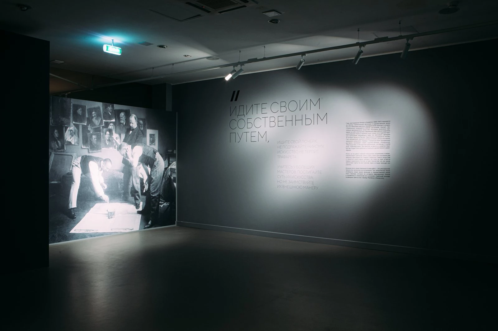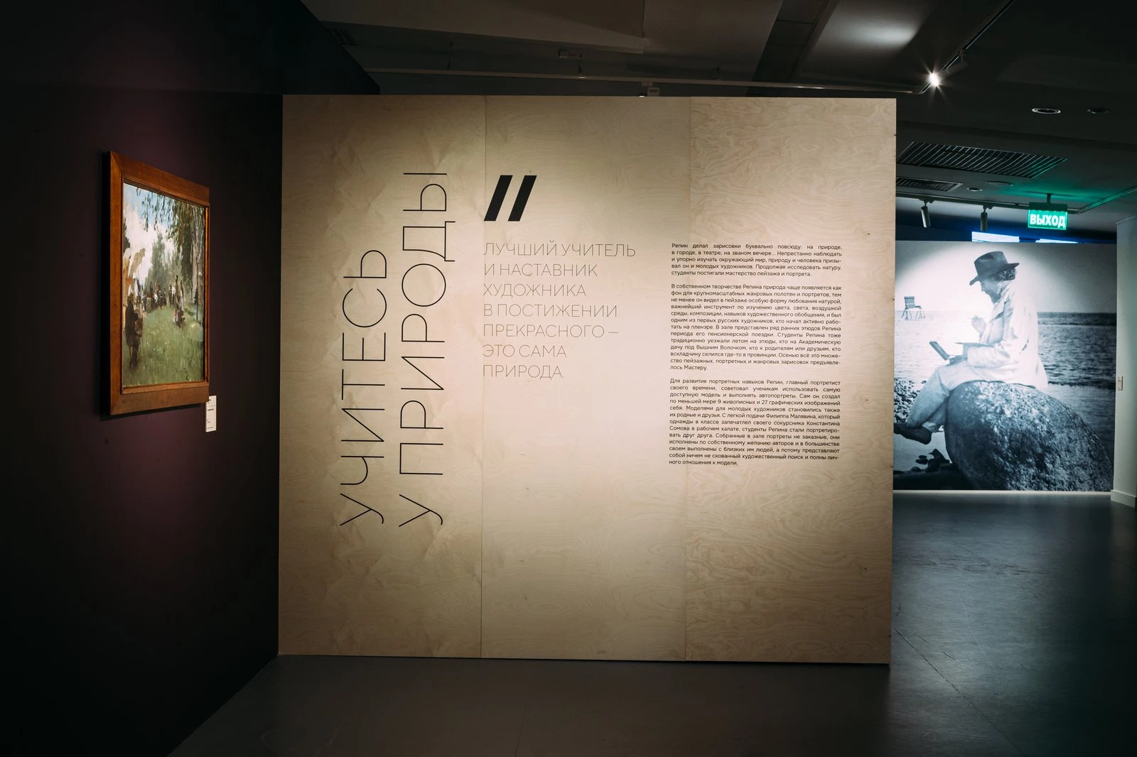 Наша выставка — это не просто восхитительная живопись, это эмоциональное погружение и путешествие по пути художника. Важную роль в нем занимают воспоминания учеников Репина, которые рассказывают очень личные истории наблюдения за Мастером и общения с ним. Они дают объемную картину характеров и времени, оказываясь удивительно современными. Переплетение живописных работ формирует внутреннюю драматургию выставки, усложняясь от первого «натурного» зала к третьему, где открывается настоящий калейдоскоп творческого поиска и человеческих отношений.