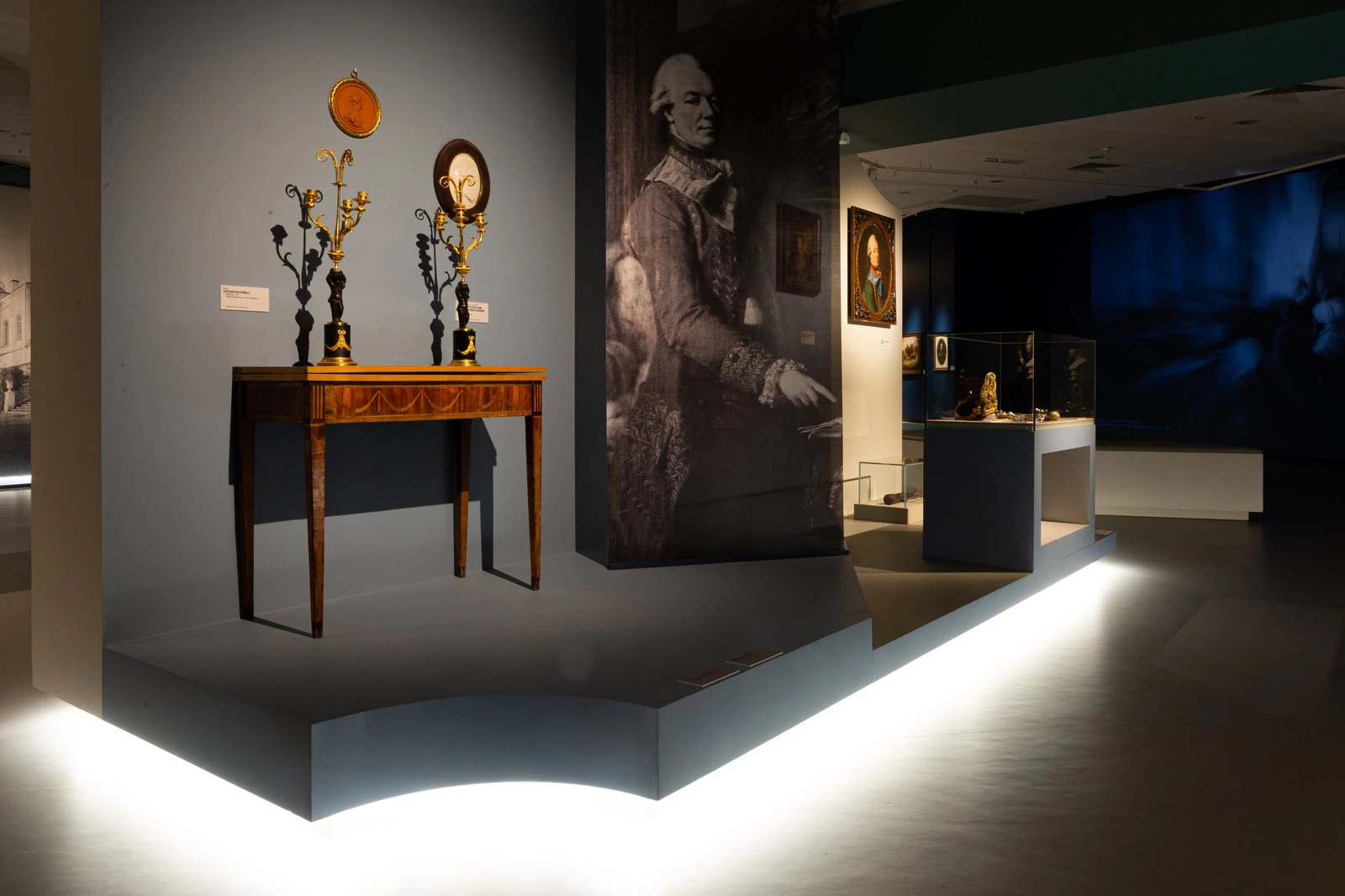 Кроме этого, посетители увидят коллекцию европейского оружия XVI–XVIII века, собранную князем С.М. Голицыным, произведения уральских и архангельских мастеров XVII–XVIII вв. и многое другое. Как символ текущего времени на выставке ритмично расставлены часы работы мастеров Англии, Франции, России.